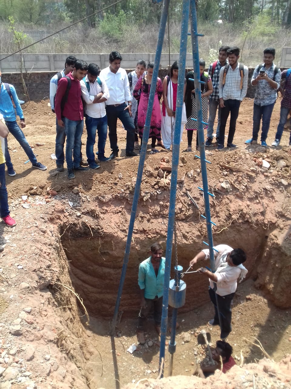 The students have gone to the site where the bearing capacity of soil is required for the construction and they have observed the test under guidance of expert.