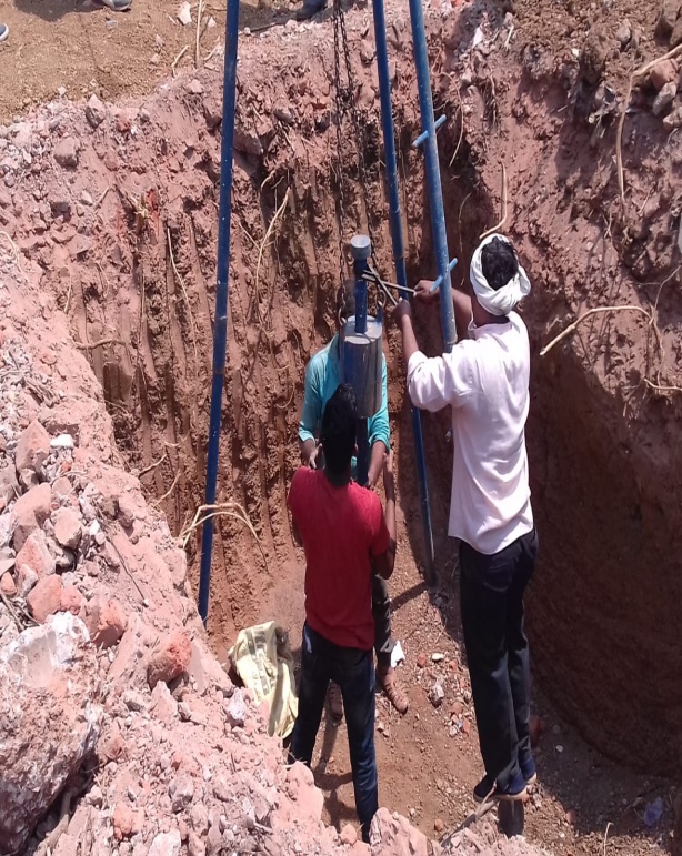 The students have gone to the site where the bearing capacity of soil is required for the construction and they have observed the test under guidance of expert.